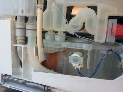 - Сборка и тестирование. Установите насос и фильтры обратно на место, соберите панель. Подключите посудомоечную машину к электросети и запустите тестовую программу для проверки слива воды.